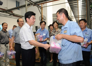 7月12日下午,苏州市总工会主席温祥华等市总领导,在3044AM永利集团投资纪委书记郁天、公司控股子公司苏州轴承总经理沈洪洋、党委书记傅勤衡的陪同下,来到公司控股子公司苏州轴承生产车间现场,向在高温下坚守生产岗位的一线员工表示慰问,叮嘱员工们在保质保量的同时,一定要注意劳逸结合并送上了夏季防暑清凉用品。在与公司领导交谈中,温主席一行详细询问了苏州轴承防暑降温和安全生产工作,他要求苏州轴承一定要把防暑降温和安全生产措施落到实处,切实保障好夏季高温一线员工的生产安全和身体健康。