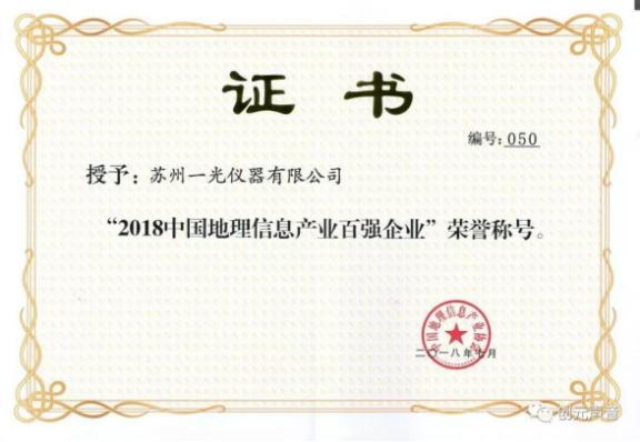 苏州一光:获评“2018中国地理信息产业百强企业”